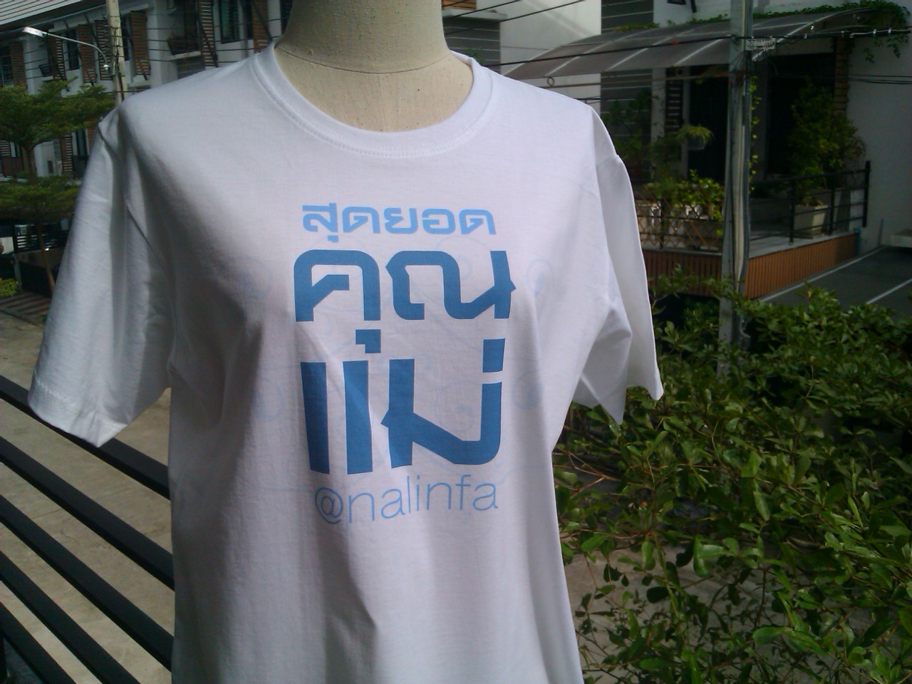 พอทำให้คุณลูกค้าปั๊บ โบว์ก็เลยอยากได้สักลายไว้ให้คุณนายนลินฟ้าไว้ใส่เองบ้าง เลยให้ฝ่ายออกแบบของร้าน (คือคุณสามี) ออกแบบมาให้ตัวนึง ตัวที่สกรีนว่าสุดยอดคุณแม่นี่แหละ :22: